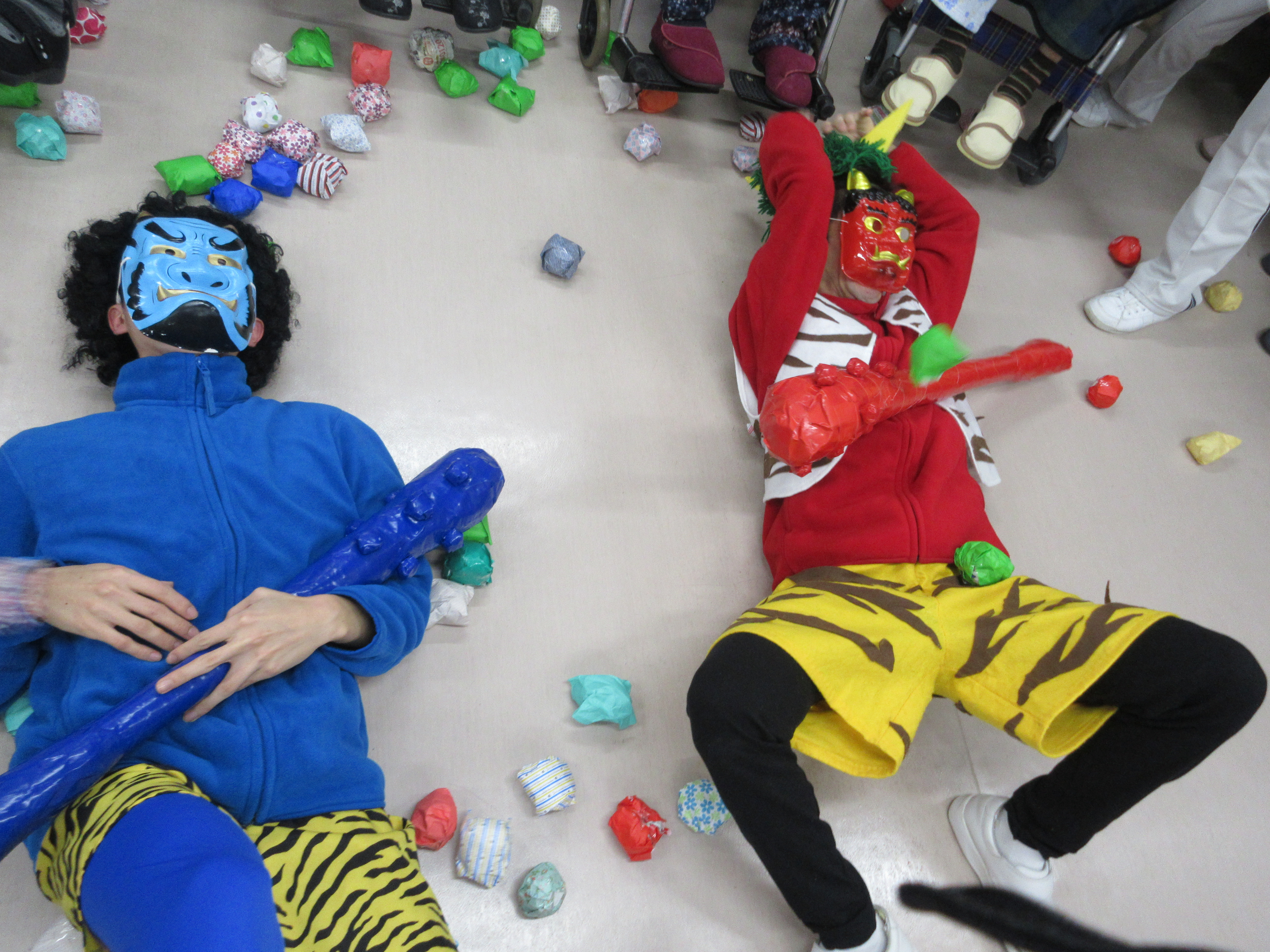 感染対策のもと、節分の話やゲーム、豆まき等を行い、患者さんは節分の季節感を味わっていました。豆まきでは、心と体の健康を願いながら取り組んでいました。